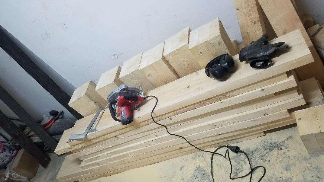 I picked up wood in January 2021 from the sawmill, stacked it up in the garage, and turned on the dehumidifier and fan, as well as the heater to keep ambient temperatures high enough for water to evaporate.