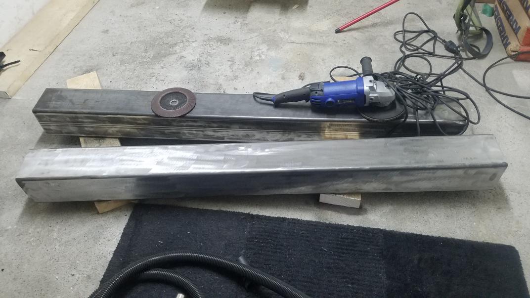 Instead of spending 3/4 of my lifetime trying to sand these faces to what would be a very inexact result, I decided to go with epoxy leveling. Getting the steel machined flat was quite a bit too expensive and to do it right I'd be better to weld additional plate on each face to machine flat instead of the tube itself. To prep for the leveling, I first ended up pickling my steel (covered better on the PrintNC Wiki article), although I didn't take any photos of my own process) I used a dilute mixture of HCL (Hydrochloric acid) and H3PO4 (Phosphoric acid), and since it was quite dilute it took about 30min-1hr per piece.