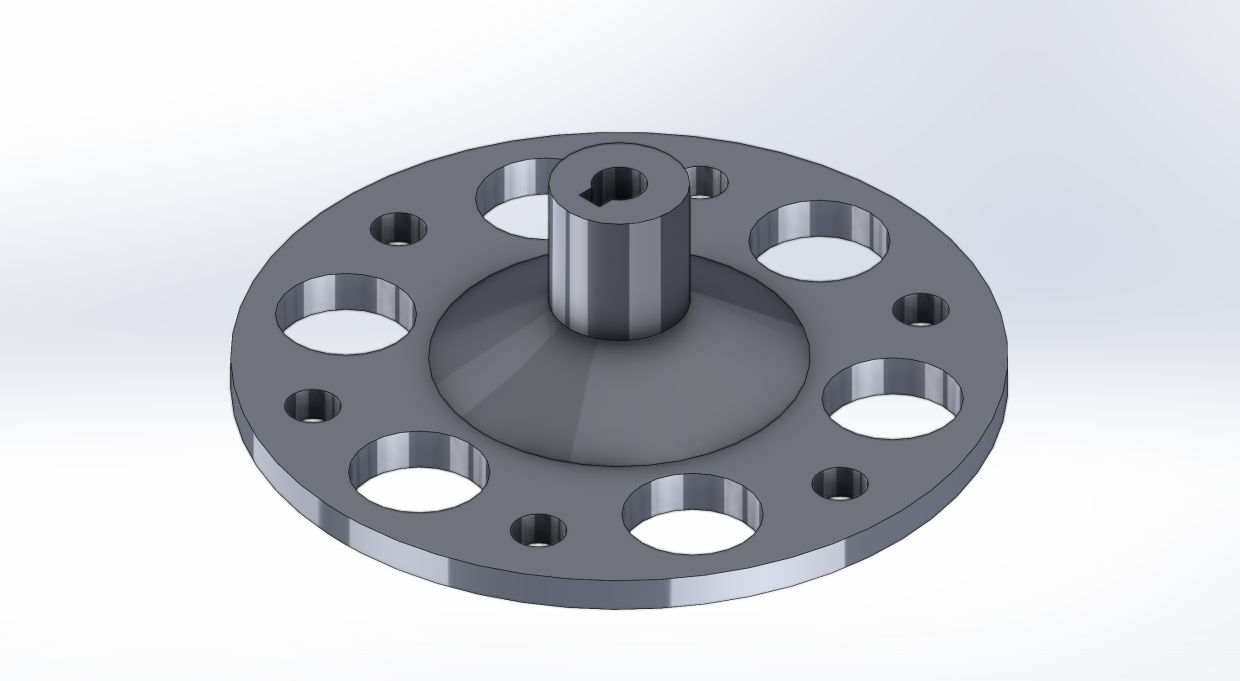 When designing the wheels for the robot tank, I wanted reasonable strength with minimal material usage. Through iteration, I was settled on the wheels seen above with many holes and nearly completely hollow design that I wanted to 3D print.