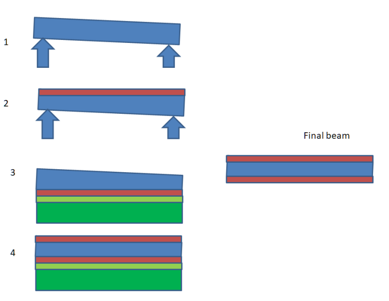 This diagram above demonstrates pouring epoxy on both sides of the X axis without a solid reference surface. Some error can be mitigated by flipping the beam 180 degrees after the first pour, but it does not eliminate error entirely. In other words, pouring epoxy onto the beam, and then merely flipping it over, does not necessarily result in a beam with two surfaces that are parallel with each other.
